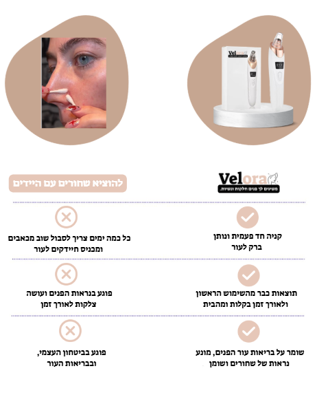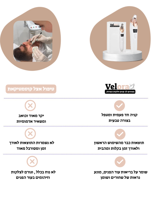 המכשיר של Velora נועד להביא לך פנים זוהרות, נשיות ומושלמות.