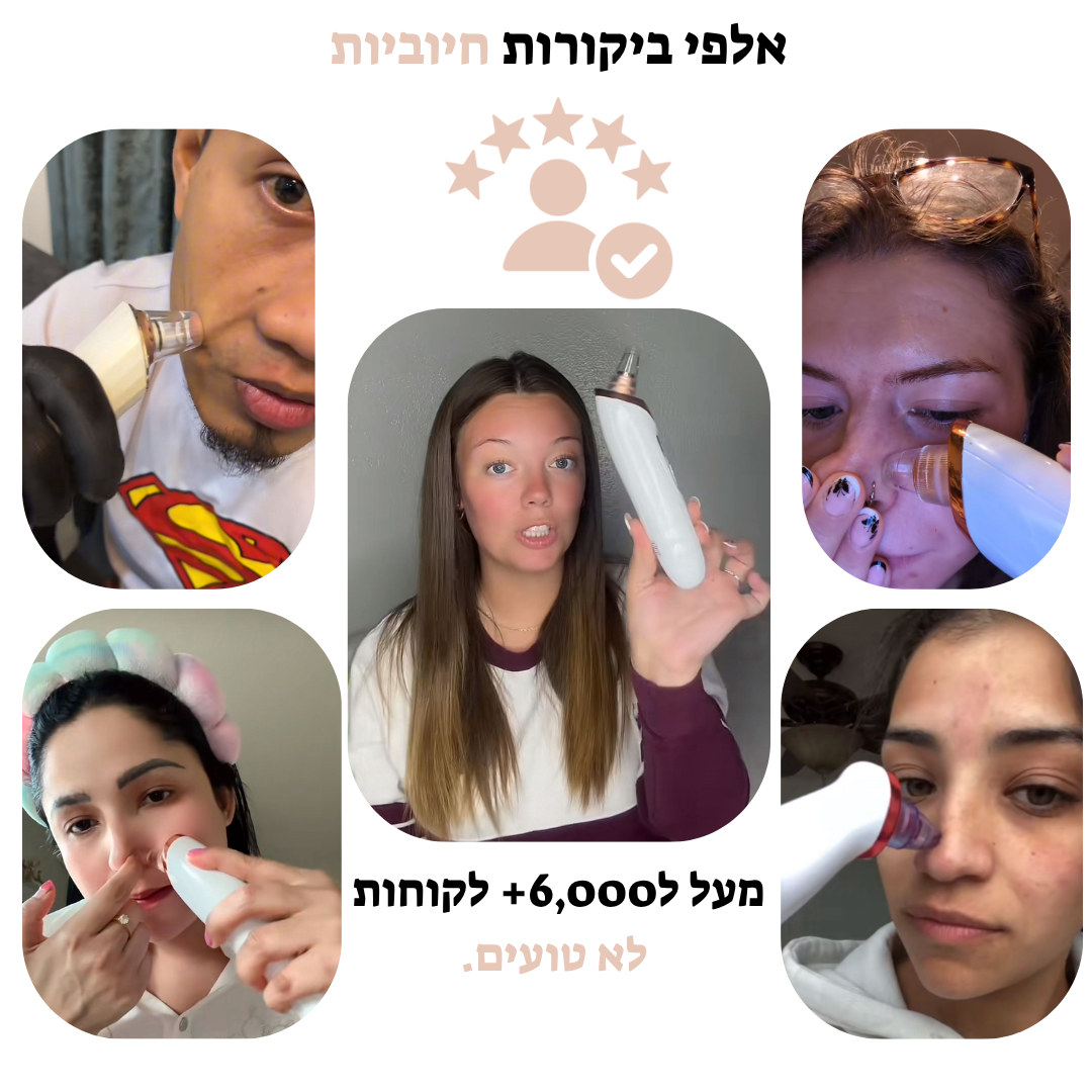 אחרי שעזרנו למעל 6,000 נשים מרוצות שהצליחו להיפטר מהשחורים והפצעונים שעל הפנים. הגיע תורך להשתדרג למכשיר שלנו ולבחור בעור פנים חלק וזוהר🤍